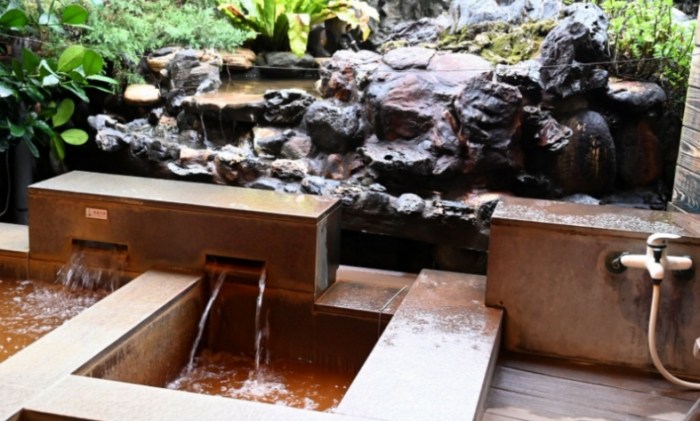 - 水質特色: 無色無味,屬弱鹼性碳酸氫鈉泉,富含鈉、鎂、鈣、鉀、碳酸離子等礦物質,水摸起來有滑潤感,故有「美人湯」之稱,對面板很好。