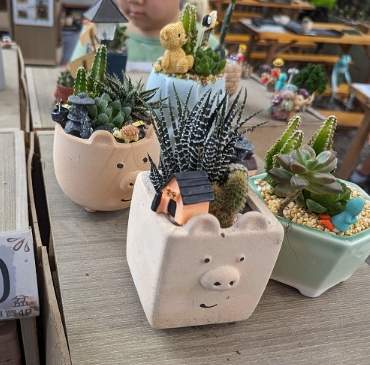 - DIY盆栽: 可以自己動手組合喜歡的多肉,工作人員會指導,趣味性高(價格依選的盆器及植物而定)。