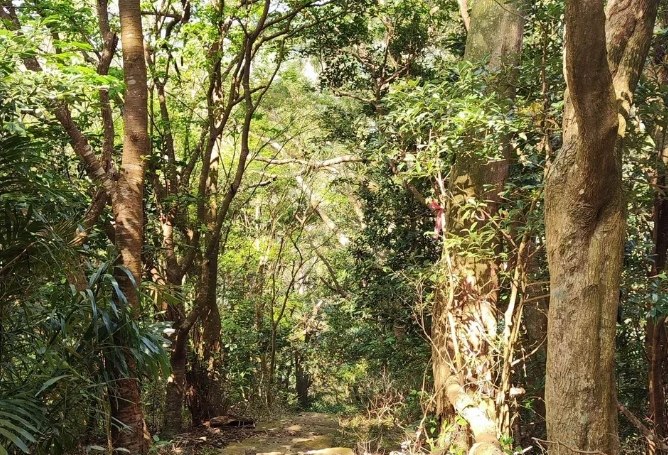 - 主步道(從列印臺登山口出發): 這是最大眾化的路線。全程幾乎都是花崗巖步道或枕木階梯,維護得相當不錯(起碼我去年去的時候是這樣)。雖然一路爬升,坡度大概算中等吧(個人感覺比象山陡一點,但比七星山主峰那可怕的階梯好多了),走走停停拍拍照,慢慢晃約40-60分鐘就能登頂。沿途林相豐富,蟲鳴鳥叫,運氣好還能遠眺北投市區。