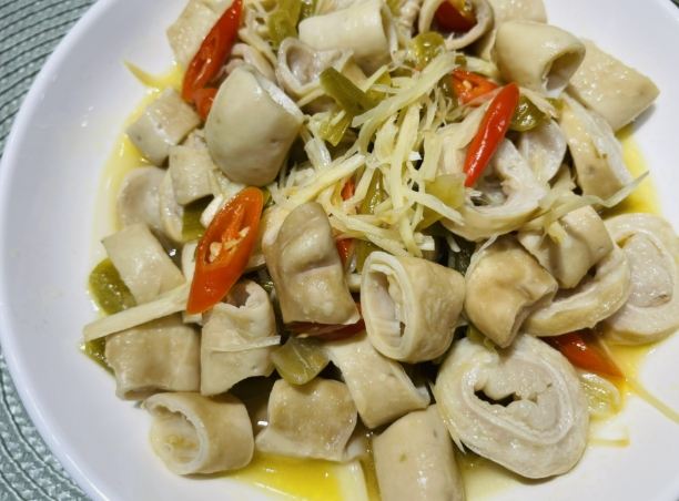 - 薑絲大腸: 酸得夠勁!大腸處理得很乾淨,口感Q彈有嚼勁,薑絲和醋的酸香非常開胃,也是超級下飯的一道經典。