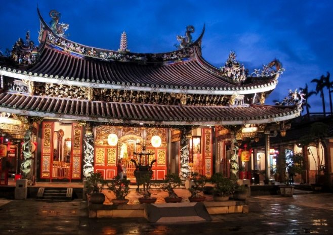 感受:人潮相對龍山寺少很多,更容易靜心欣賞建築之美。廟埕廣場寬闊,旁邊還有孔廟可以一併遊覽(走路3分鐘)。這裡的氛圍更貼近當地居民的信仰中心,商業氣息淡許多。美術老師帶學生來寫生的畫面很常見。