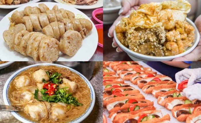 - 基隆獨門味: 炭烤吉古拉(崁仔頂)、豆簽羹(分散)、蝦仁肉圓(在地老攤)、酒釀芝麻湯圓(全家福)。