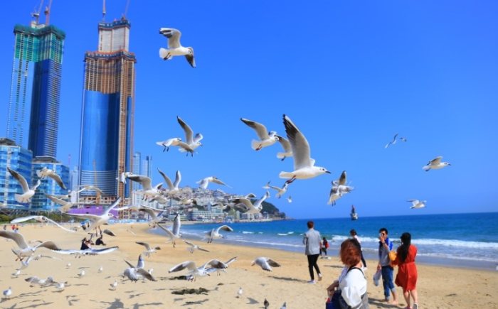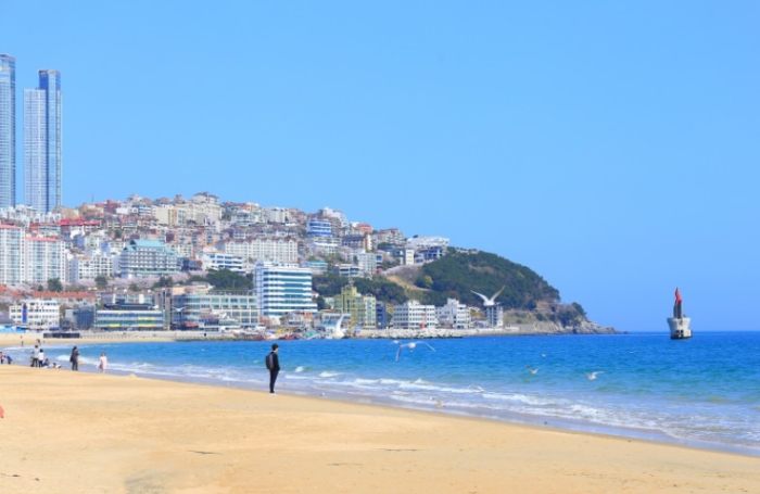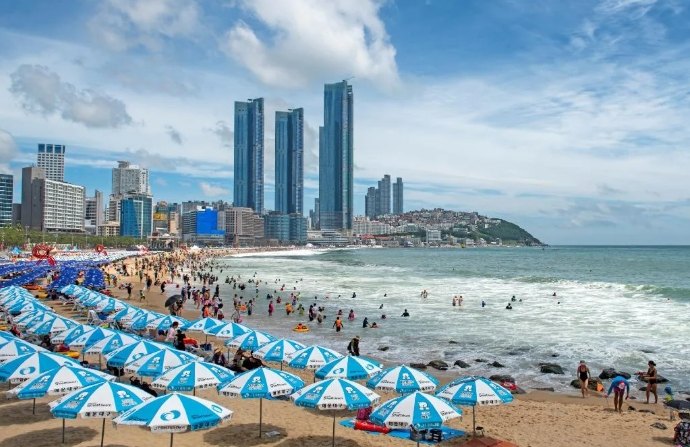 說到海雲台景點,這片綿延將近1.5公里的白沙灘,絕對是頭號招牌!它可不只是夏天玩水那麼簡單。清晨天還沒全亮,沙灘上就有人散步、跑步,甚至打太極,空氣清新得讓人想多吸幾口。白天當然是熱鬧滾滾,遮陽傘像朵朵花開,玩水的、曬太陽的、堆沙堡的,笑聲沒停過。你知道嗎?我特別喜歡傍晚時分,太陽下山把天空染成橘紅色,這時候脫了鞋踩在涼涼的沙子上散步,感覺整天的疲勞都被海浪帶走了。冬天來也別有風味(雖然冷到爆!),人少很多,海風呼呼地吹,有種孤寂的美感。每年元旦的日出慶典更是萬頭鑽動,想卡個好位置?那你得半夜就來跟韓國人拚耐力!附近咖啡廳、餐廳多到數不清,玩累了隨時補給。這裡就是海雲台的心臟地帶,能量滿滿!