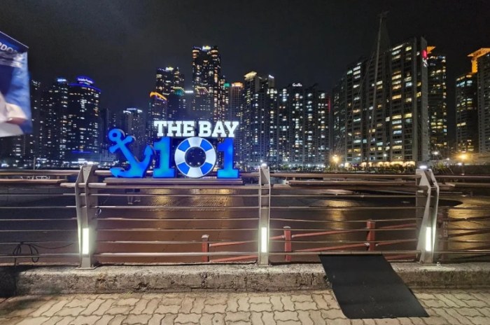 這裡是海雲台的時尚潮流地標!由貨櫃和鋼構打造的複合空間,緊鄰著遊艇碼頭,整體氛圍很現代、很chill。一樓是美食廣場(Yacht Food Hall),集合了多家人氣餐廳和攤位,從漢堡、牛排、海鮮、異國料理到酒吧都有,戶外座位區直接面對碼頭,視野超好(但價格也比較精品)。二樓則有景觀咖啡廳,夜晚點燈後氣氛絕佳。最有名的打卡點是碼頭前廣場那灘淺淺的積水,天氣好無風時,可以拍出超夢幻的「天空之鏡」,倒映出整個The Bay 101的璀璨燈光和背後的摩天大樓,我晚上去拍過,效果真的很驚人!適合晚上來吃飯、小酌、看夜景、拍美照。是個很有都市感的海雲台景點。