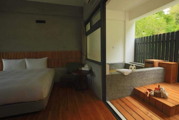 - 酒店介紹: 這是我個人私心非常愛的一家溫泉民宿!跟天合是完全不同的風格。走的是低調質感路線,隱身在鄉間小徑旁,環境清幽。最厲害的是它每間房都擁有獨立的半露天檜木湯池!是真的檜木桶,而且湯池空間超大,泡起來舒適度極高,隱密性也好。整體設計簡約日式,很有禪風。